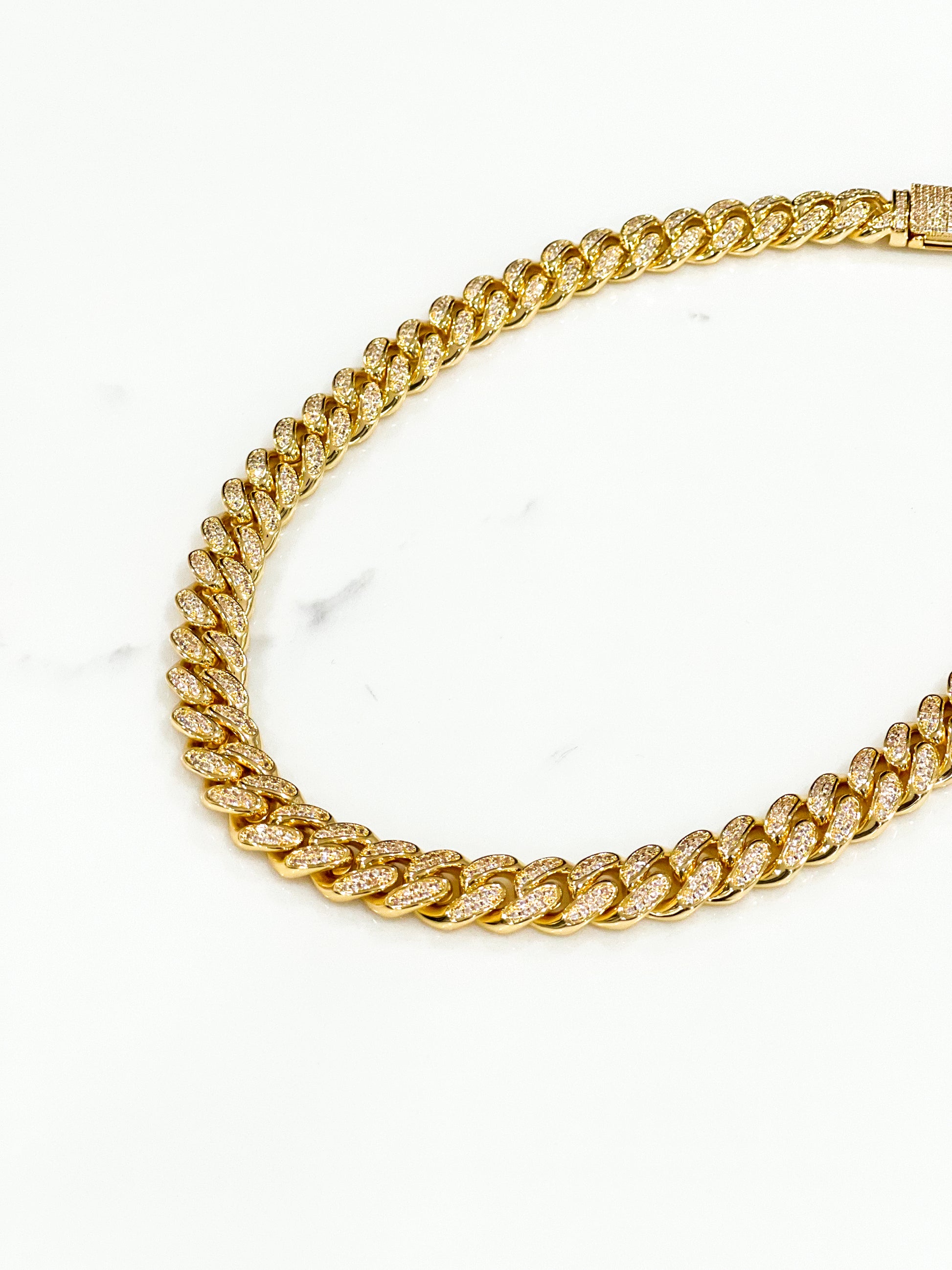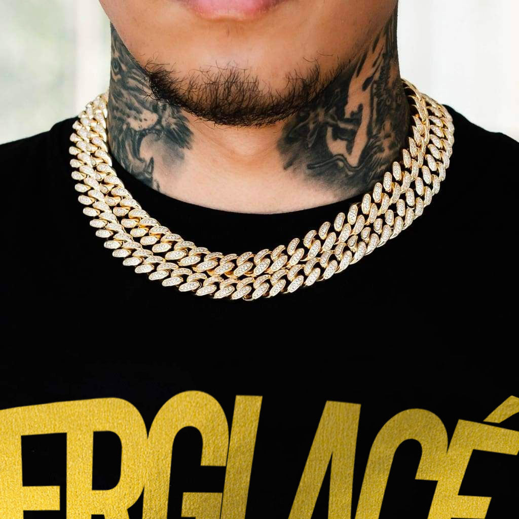 Elevate your accessory game with the “Diamond Cuban Link Necklace (12mm) in Gold,” a timeless piece that brings a touch of glamour and sophistication to any look.